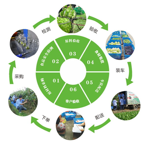 從農(nóng)田到餐桌、實(shí)惠、安全、衛(wèi)生、專業(yè)的采購及統(tǒng)一的物流配送